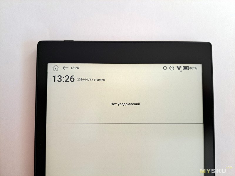 Я же давно привык, что электронные книги под управлением Андроид включаются неторопливо. Но этой модели есть особенность – после нажатия на кнопку включения ничего не происходит несколько секунд. И уже задумываешься — достаточно хорошо ли нажал, и только потом появляется экран загрузки…