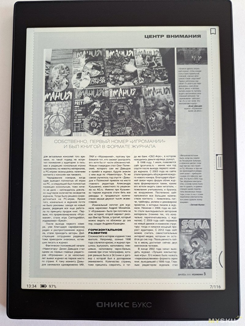 На экране 7.8 дюйма страница журнала получается мелковатой.