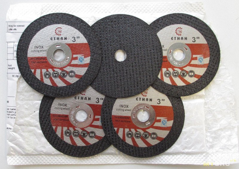 Как известно, диски для 75мм миниболгарок сильно отстают в ассортименте и превосходят в цене таковые для своих полноразмерных собратьев в 125/115мм. На али тоже не очень радует (хотя там даже отечественный производитель затесался, с платной доставкой). А вот на озоне попались предложения поинтереснее, их-то перед новым годом и прикупил. Сейчас они несколько вздорожали, но цена гуляет и встречаются предложения дешевле.