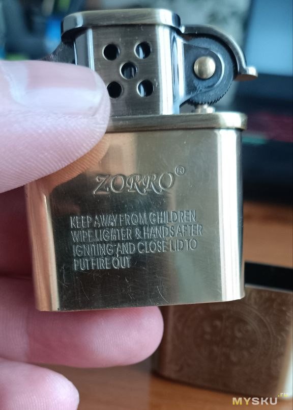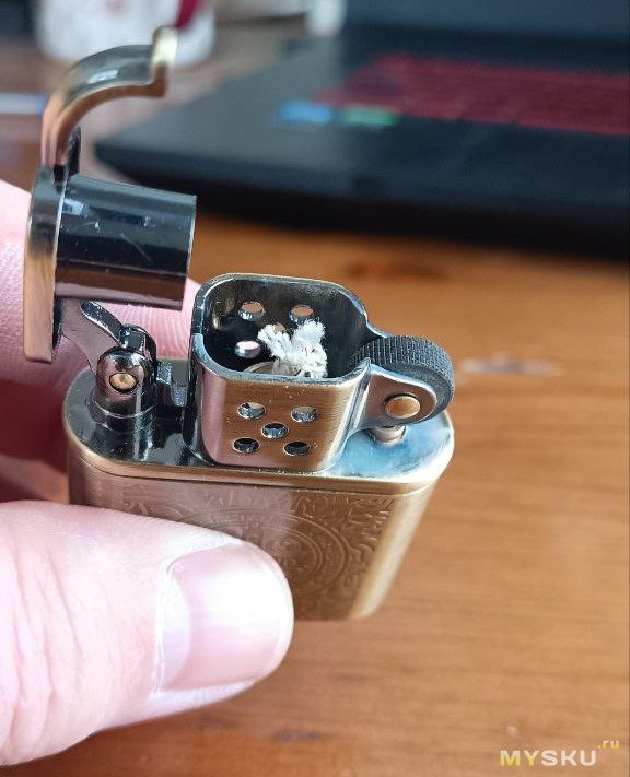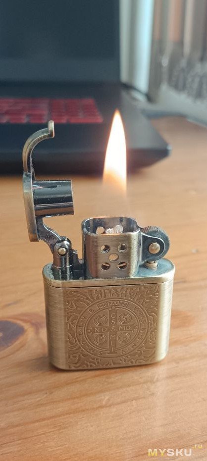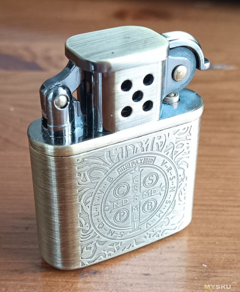 Понравилась гораздо больше zippo тем, что тут конструкция продуманная, крышка герметично закрывает фитиль и бензин не испаряется почём зря.
