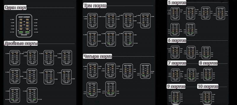 При подключении потребителей парные порты (объединены линиями на фронтальной панели прибора) перезагружаются, непарные — нет. Два верхних порта по 100 Вт не являются парными.