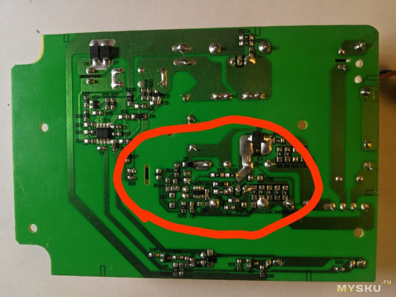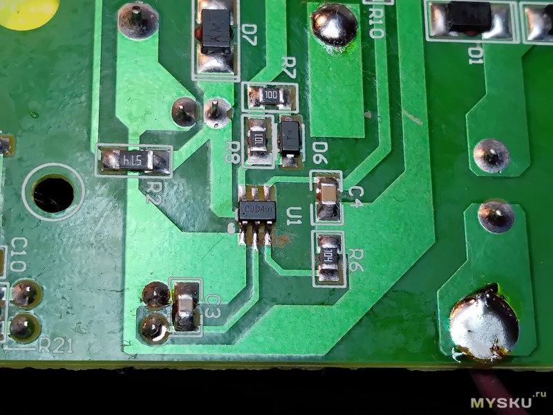 Однако упорным засвечиванием мне удалось все-таки рассмотреть 358 на микросхеме в холодной части. И все сразу стало ясно как белый день (кстати, все микросхемы подписываются как IC, будь это даже TL431).