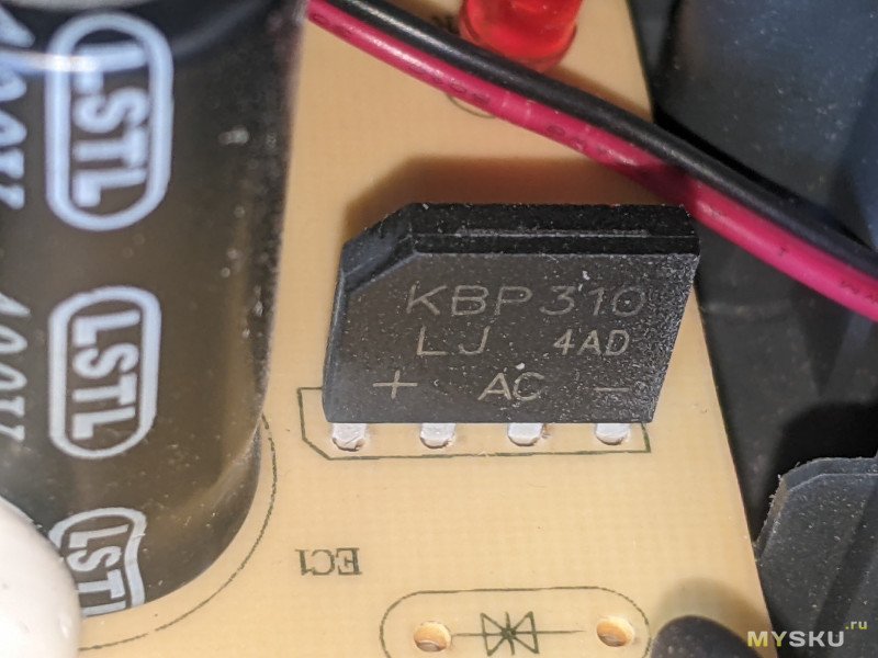 Что касается элементов платы, видим KBP310, Диодный мост 3А 1000В.