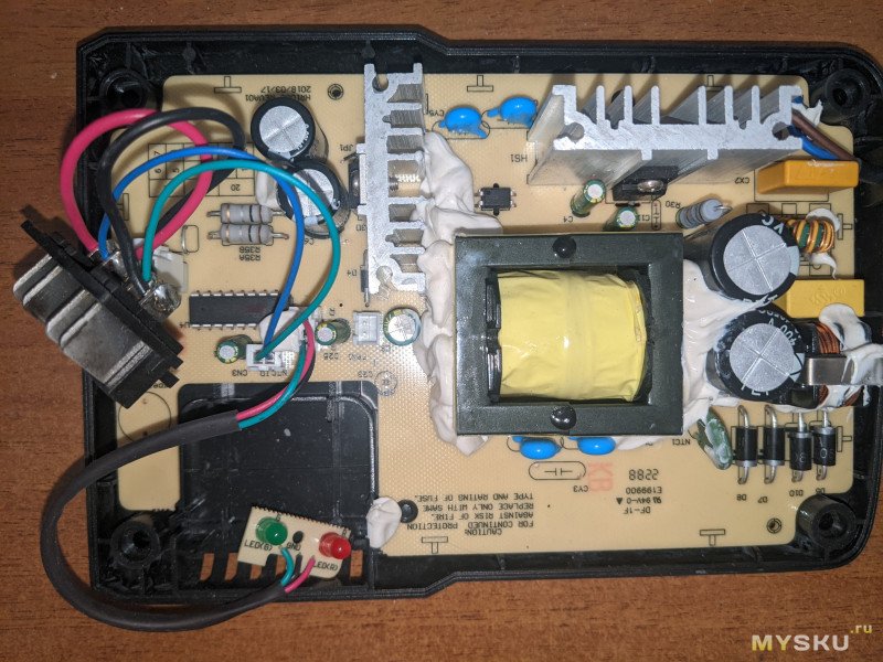 Да вообще, все элементы хиленькие. Но за счет вентилятора они должны прослужить подольше. Вот для сравнения плата 5А зарядного без активного охлаждения и более качественная.