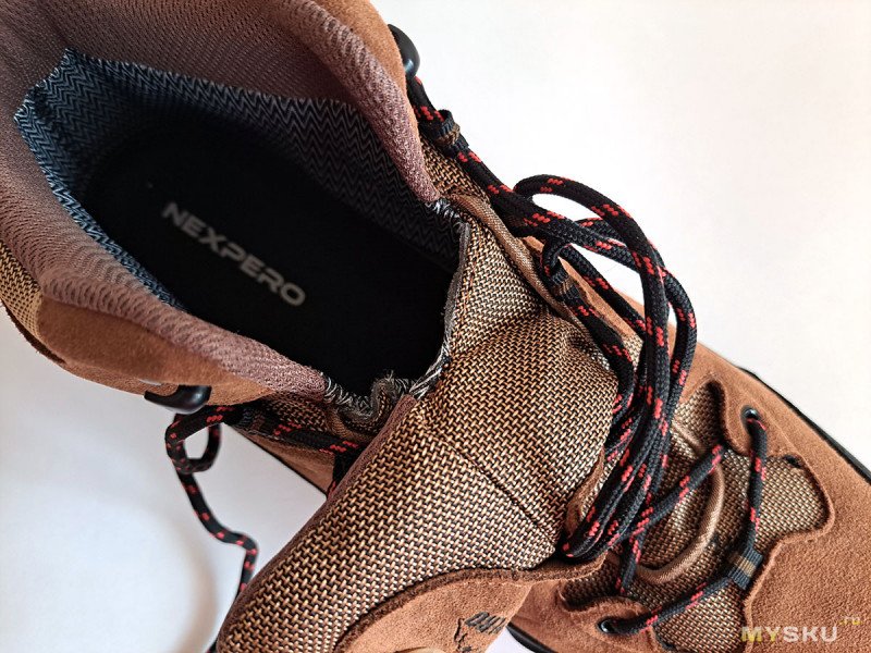 У ботинок высокий клапан на язычке. Заодно, тут можете оценить количество утеплителя. Я думаю, его не больше 100 г/кв.м.