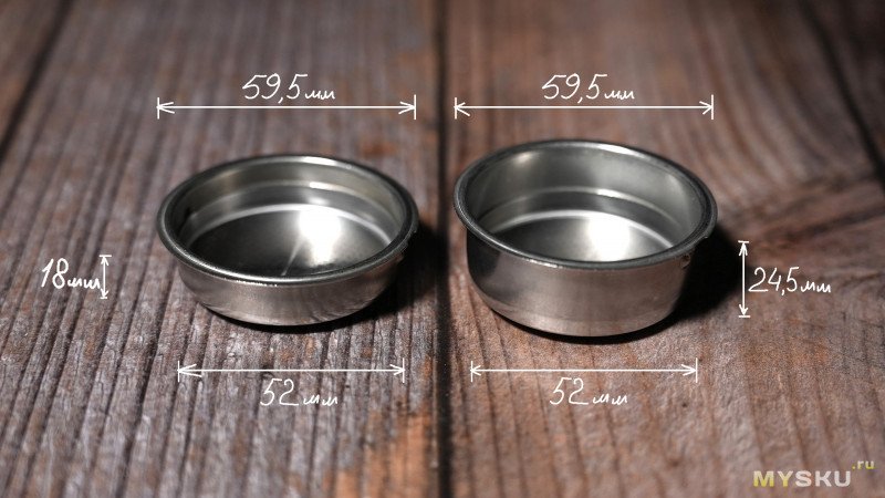 Отличие двух чашек — в объёме за счёт высоты. Одна рассчитана на приготовления одной порции кофе, а вторая побольше — на две порции кофе.