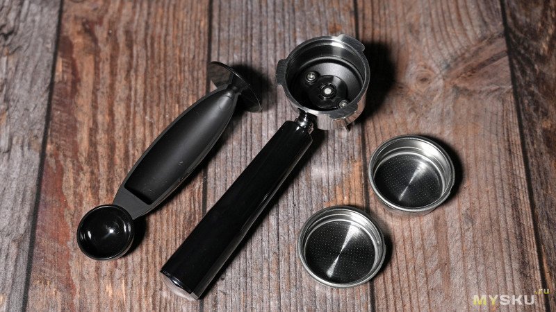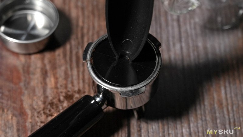 4) Также есть мерная ложка с темпером для утрамбовывания кофе в ровную таблетку.