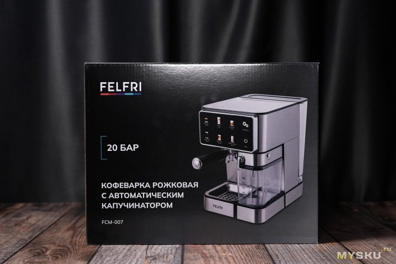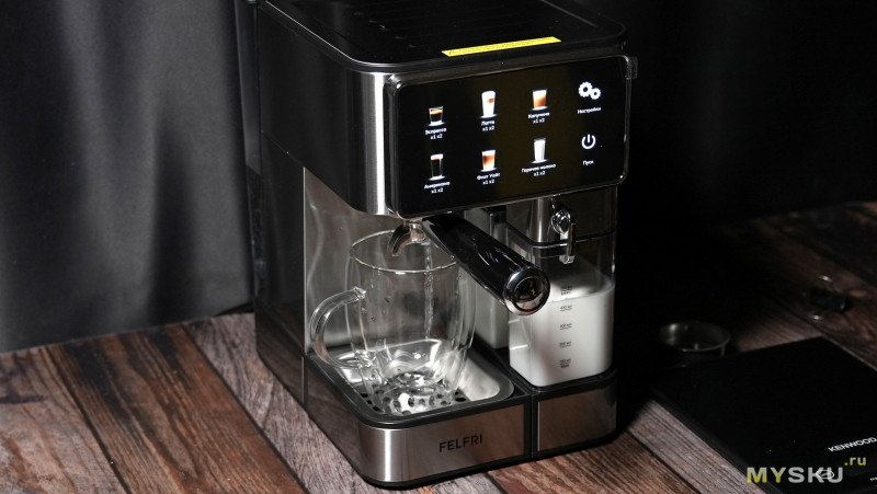 Felfri FCM-007 — кофеварка рожкового типа с программами для приготовления нескольких видов кофе и отдельно горячего вспененного молока, причём программы можно настроить, а капучинатор полностью автоматический. В обзоре посмотрим, как он варит напитки.