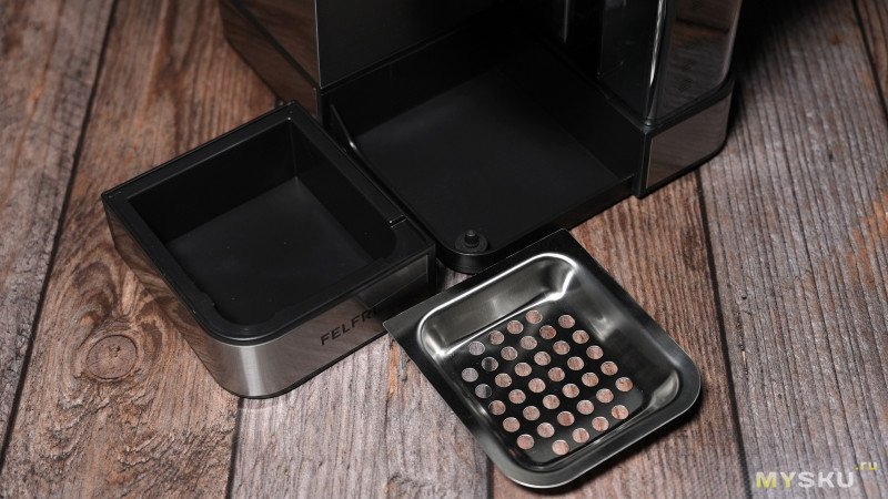 Снимается и разбирается легко, но датчиков переполнения здесь не предусмотрено, и площадь дна недостаточная, чтобы можно было поставить две ёмкости.