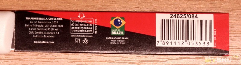 На обратной стороне «ножен» штрих код, начинается с 789, указывает на производство в Бразилии, ну и ещё разные реквизиты производителя.