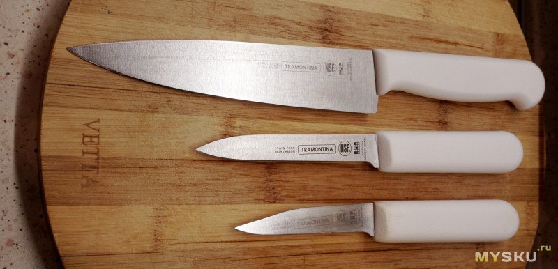 Так что, надеяться на какую-ту очень хорошую сталь в серии Tramontina Profissional по моему мнению смысла нет. Она просто неплохая, и, вероятно таки стоит своих денег. Не исключаю также, да даже и скорее всего, точу их не слишком хорошо и правильно