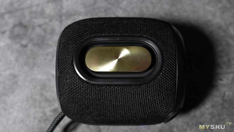 Справа и слева находятся по одному пассивному излучателю с блестяще-золотистым отливом.