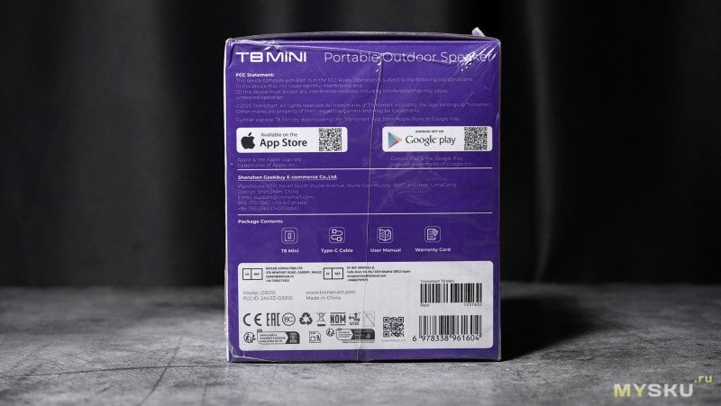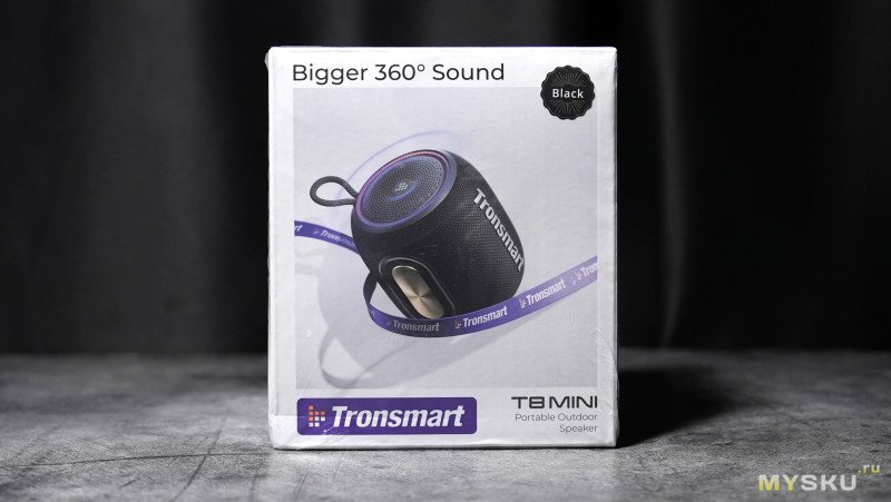 Колонка упакована в фирменную коробку в узнаваемых бело-фиолетовых цветах, характерных для товаров Tronsmart.![]() | ![]() |