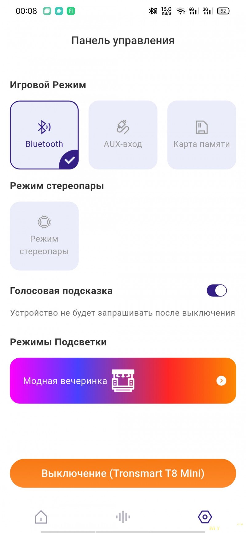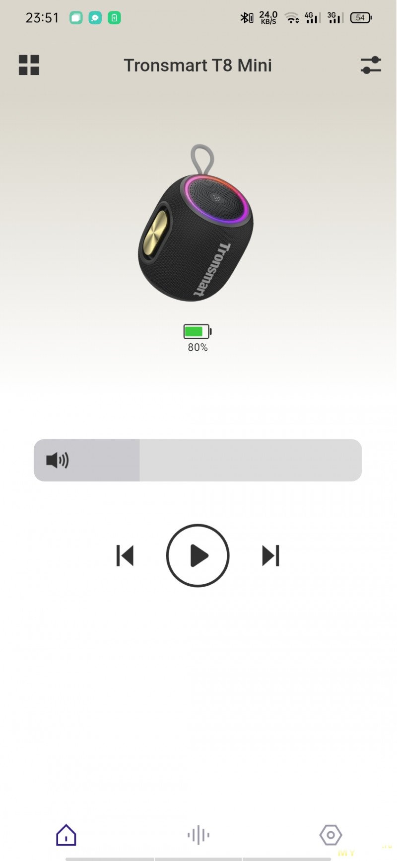 Для расширенного функционала потребуется загрузить мобильное приложение Tronsmart. Из дополнительных инструментов и настроек здесь доступны — управлением воспроизведением и эквалайзером с выбором готовых пресетов, TWS-режим при наличии второй такой же колонки, выбор источника, управление анимациями RGB-подсветки (всего три пресета), либо отключение подсветки. У колонки можно обновить прошивку.![]() | ![]() | ![]() |