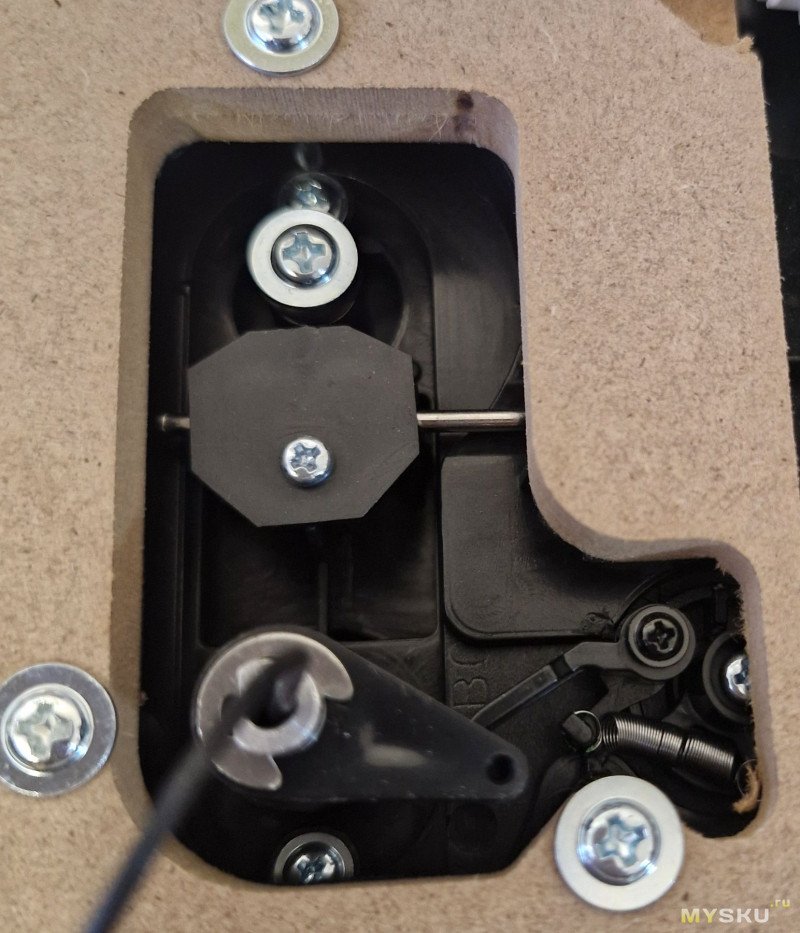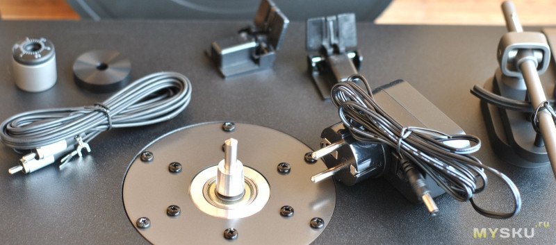 Пользователю для финальной сборки нужно поставить петли и крышку на стол, установить диск и настроить силу прижима иглы регулируемым противовесом.