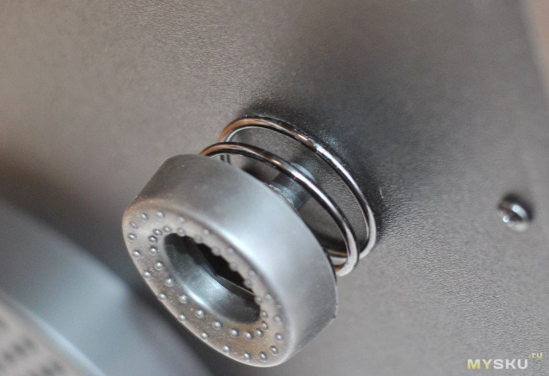 Стоит на четырех подпружиненных опорах из плотной резины, они неплохо поглощают вибрации, жесткость пружин оптимальная.