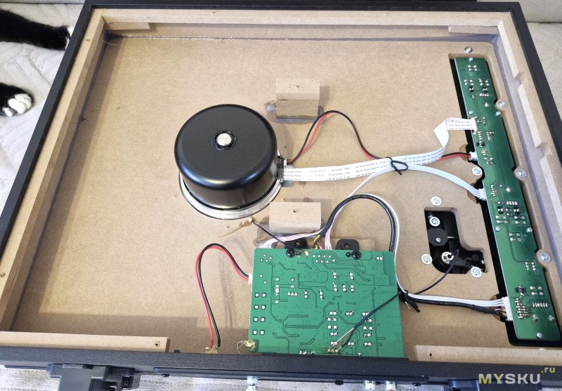 Reproductor RP-300BT частично разобран, тонарм зафиксирован от перемещений:
