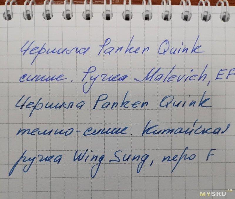Попробовал сравнить с теми чернилами, которые уже есть, темно синим Паркером.