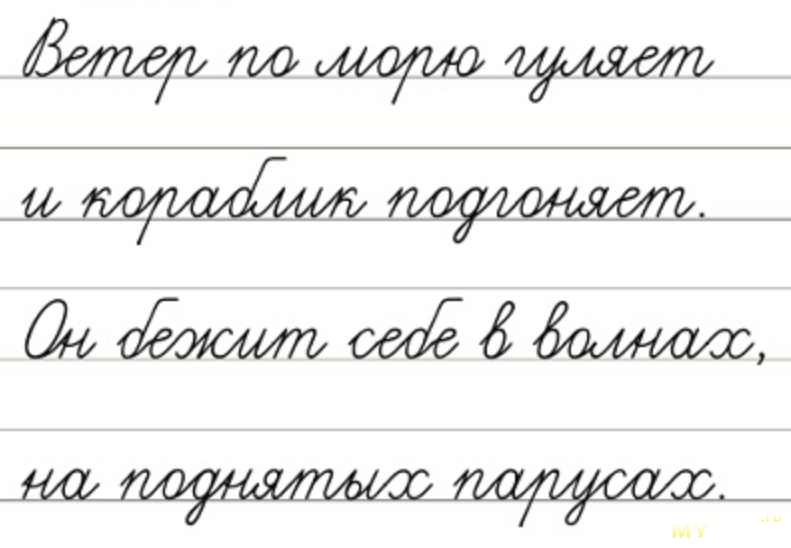 Предъявленный Вами образец явно взят из прописей. У людей почерк со временем меняется, становясь непохожим на тот чему учили в школе. К тому же на фото образец тестового письма, для того чтобы показать внешний вид чернил, поэтому не сильно важно как выглядят строки.