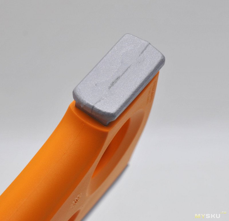 Сталь магнитится. Максимальная толщина 9 мм. Нанесено антифрикционное и защитное покрытие. Бруском подправил РК — стал резать бумагу.