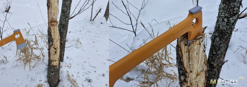 Честно сказать, качество исполнения топора не вау, да, тут больше про скандинавскую надежность и ультралегкий вес для походов (ради чего и покупал). Да рубит, не треснул на морозе, кожух для защиты сделан оригинально. Но качество обработки и заточки лезвия после литья не очень, ладно хоть закалка РК имеется. Посмотрим как будет в эксплуатации, до весны три недели осталось.Спасибо за внимание. Удачных покупок!