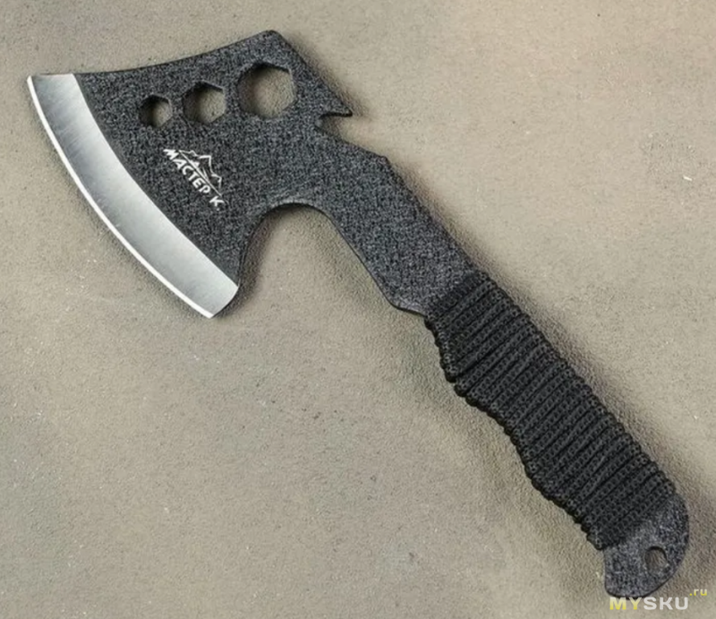 Почему этот топор универсальный? Со стороны обуха — молоток (площадка 4х2 см), его можно использовать, например, для забивания колышков для палатки, что избавляет от необходимости брать дополнительный инструмент. Но качество обработки не очень…