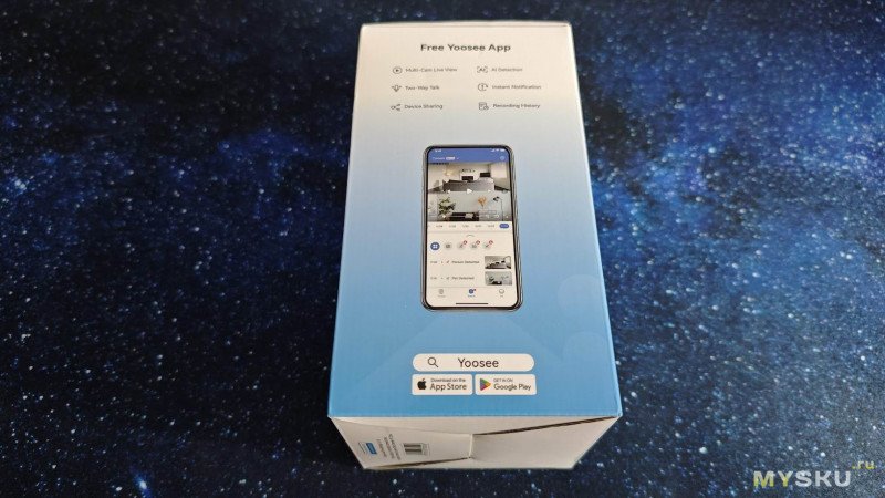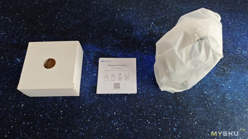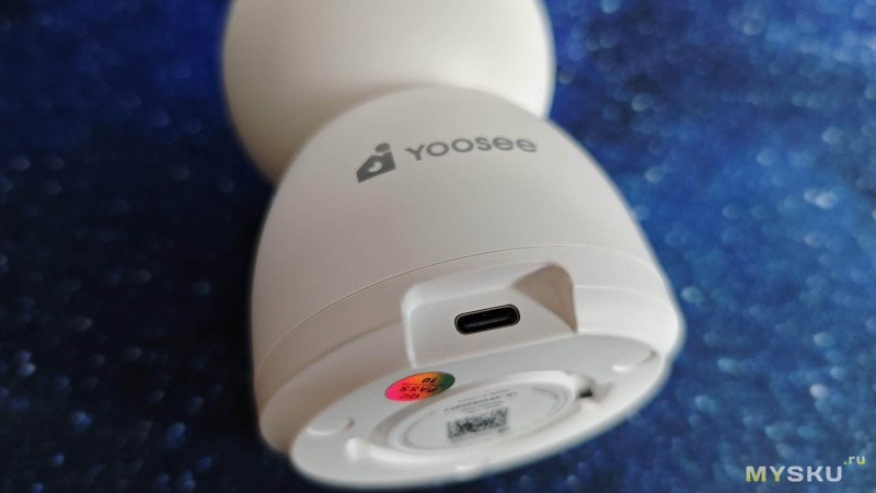 Снизу имеется QR код для скачивания приложения, с которым камера работает в паре — Yoosee. Камера имеет устойчивое плоское основание для установки на горизонтальную поверхность. В его центре расположены проушины под монтажную площадку, которая позволяет закрепить камеру хоть вверх ногами.
