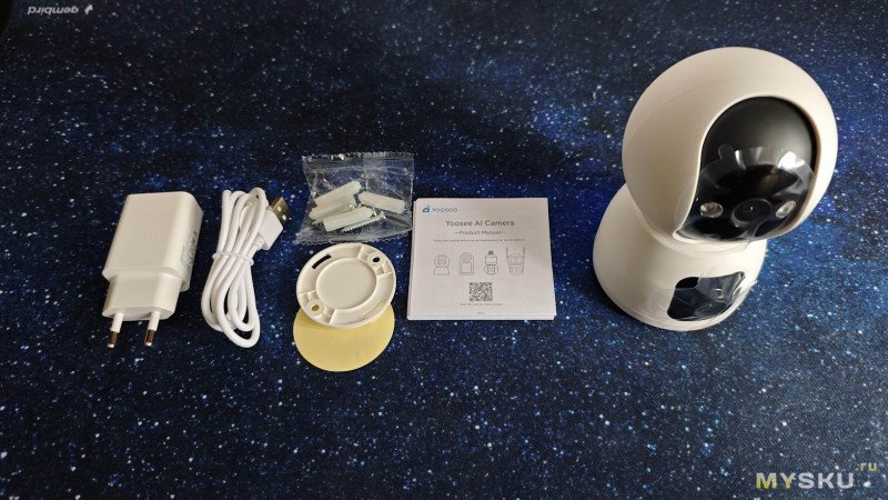 Комплект поставки вместе с камерой содержит инструкцию, зарядный кабель, монтажный набор и уже традиционный для данного бренда, но всё же неожиданный аксессуар для устройств с типовым разъёмом Type-C — блок питания.