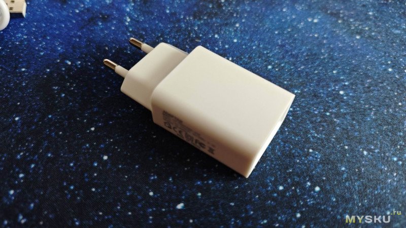 Блок питания с евровилкой рассчитан на работу в любых электросетях с напряжением 110 — 240 В и частотой сети 50/60 Гц. Выходные параметры порта Type-C 5 В/2 А.