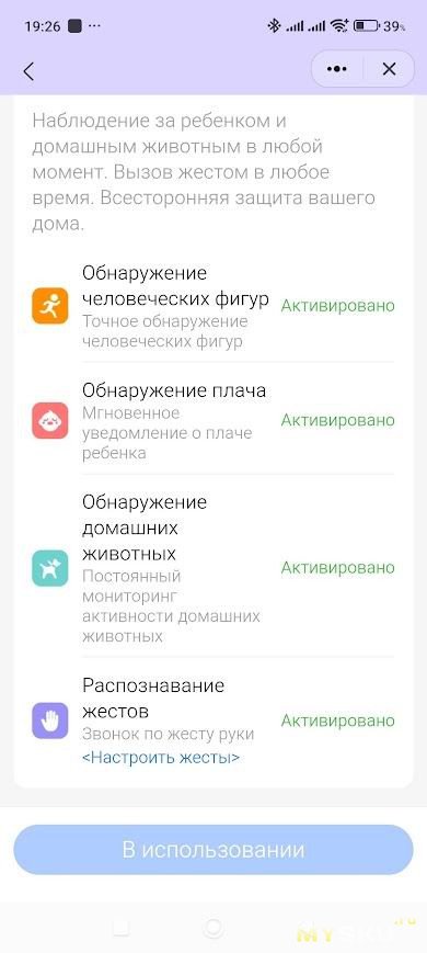 Также здесь можно выбрать и настроить функцию смарт-защиты с отправкой уведомлений на обнаружение людей, животных, плача или жестов.