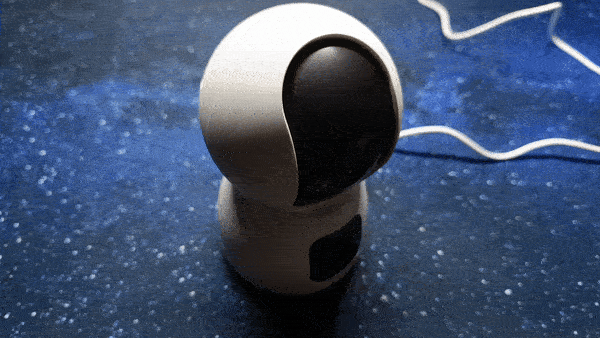 Управление камерой осуществляется при помощи виртуального джойстика. Влево-вправо вращается белый шаровидный модуль и отдельно от него вращается вверх-вниз чёрная видеоголова. По горизонтали камера делает полный оборот на 360°, вверх-вниз почти 90°.