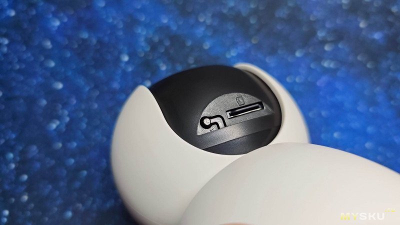 Если головку повернуть максимально вверх, то открывается доступ к слоту под карту памяти microSD и к кнопке перезагрузки.