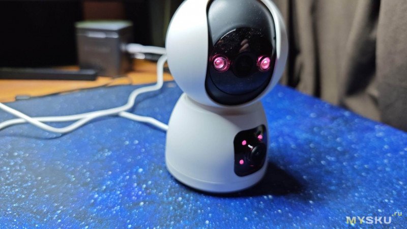 При первом включении в сеть камера в полную яркость на мгновенье включает белые светодиоды. Это неожиданно и застаёт врасплох.