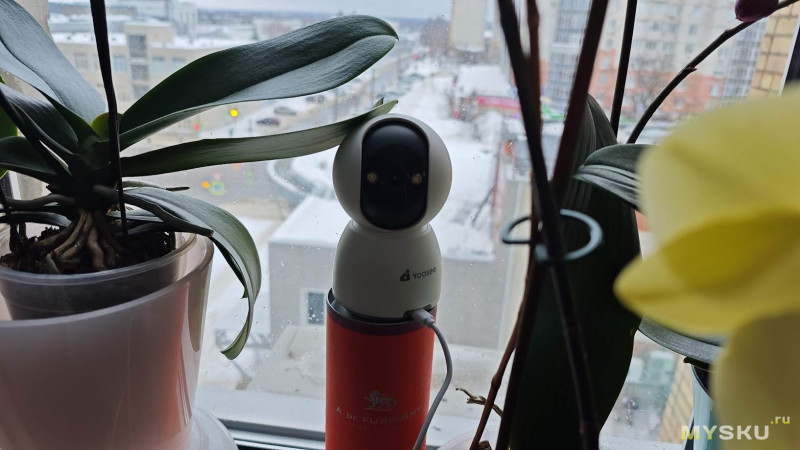 А вот если использовать камеру в том сценарии, что я привёл для примера в заголовке обзора — как охранную для автомобиля, стоящего внизу и одновременно, как контрольную для присмотра за домом, то потребуется повернуть сферический модуль задом наперёд.