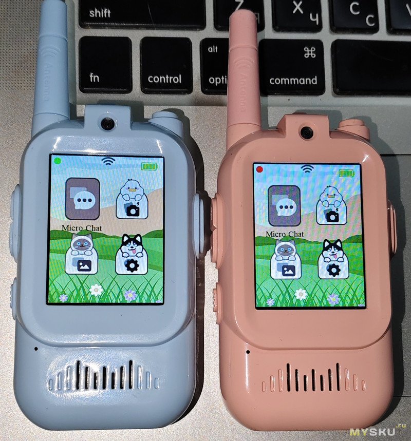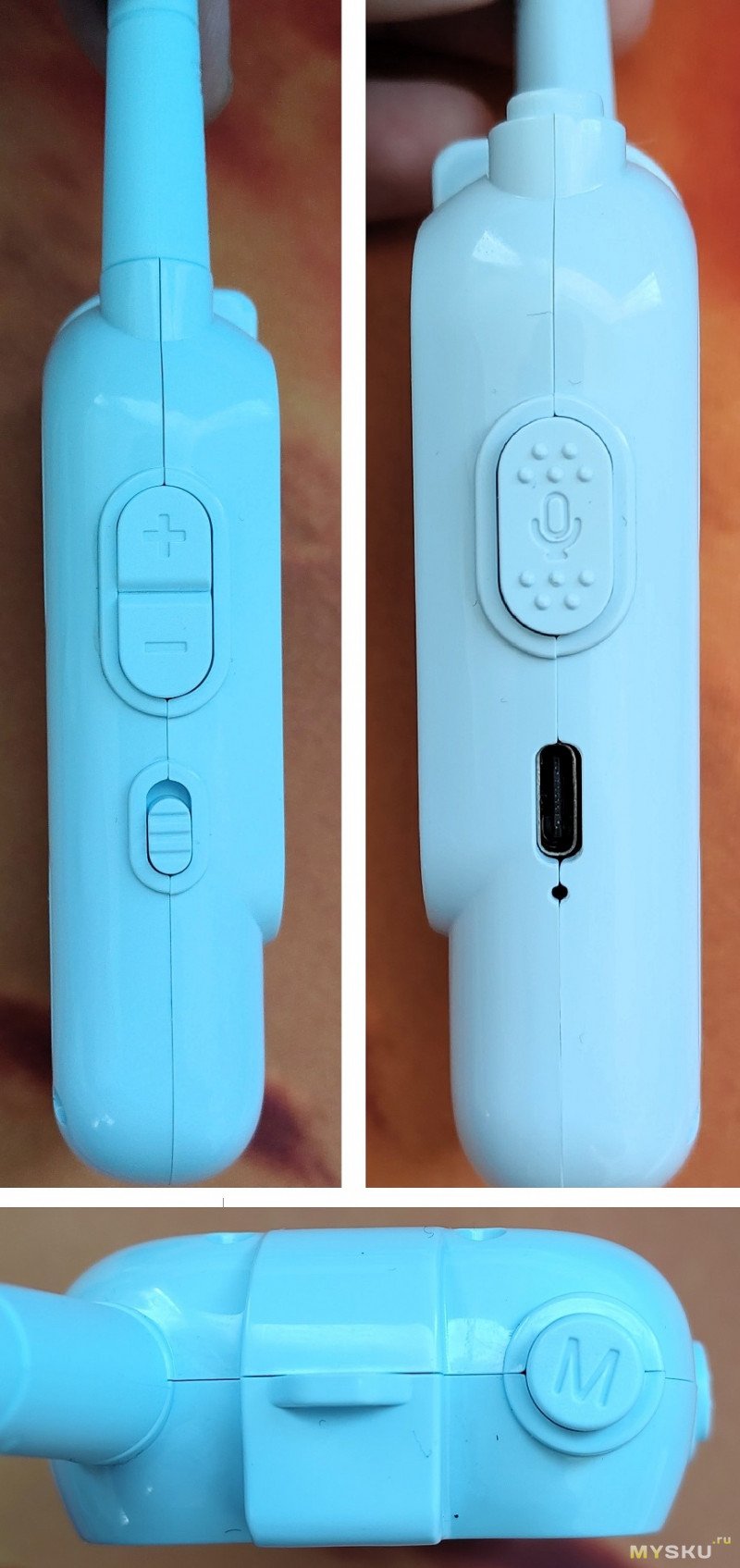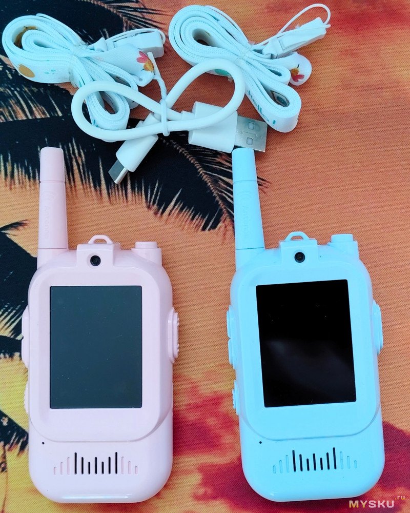 Внутри, в пластиковом блистере — 2 рации, инструкция, ремешки и кабель для зарядки Type-c (один недоложили). Дисплей ничем не защищен (кроме защитной плёнки, которую я отклеил) - для детских раций это недостаток, на мой взгляд.