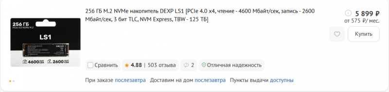у мяне сейчас договорённость с продавцом на покупку SSD M.2 NVMе 256 гБ. 2.800 руб.