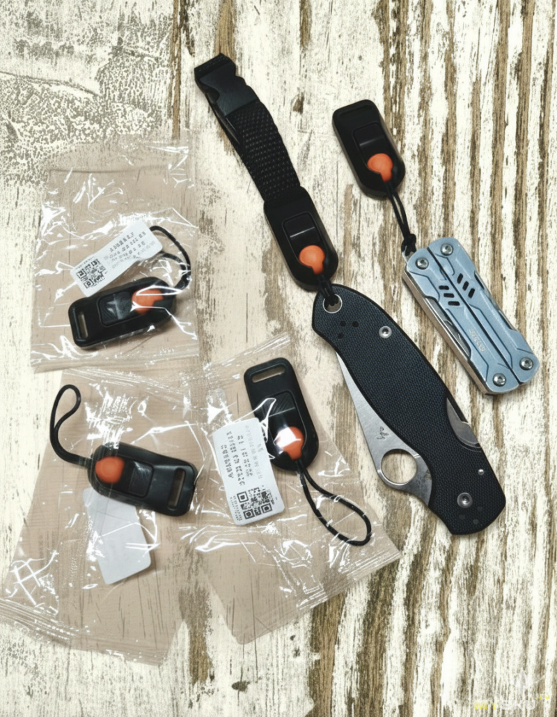 ИМХО, карабины надёжнее и универсальнее для шмурдяка в походе. Я даже в городе ключи от машины на карабин к ремню цепляю.