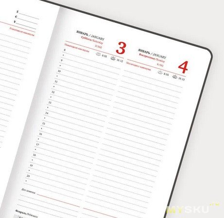 Что касается внутреннего информационного наполнения ежедневника. В основном здесь все стандартно.