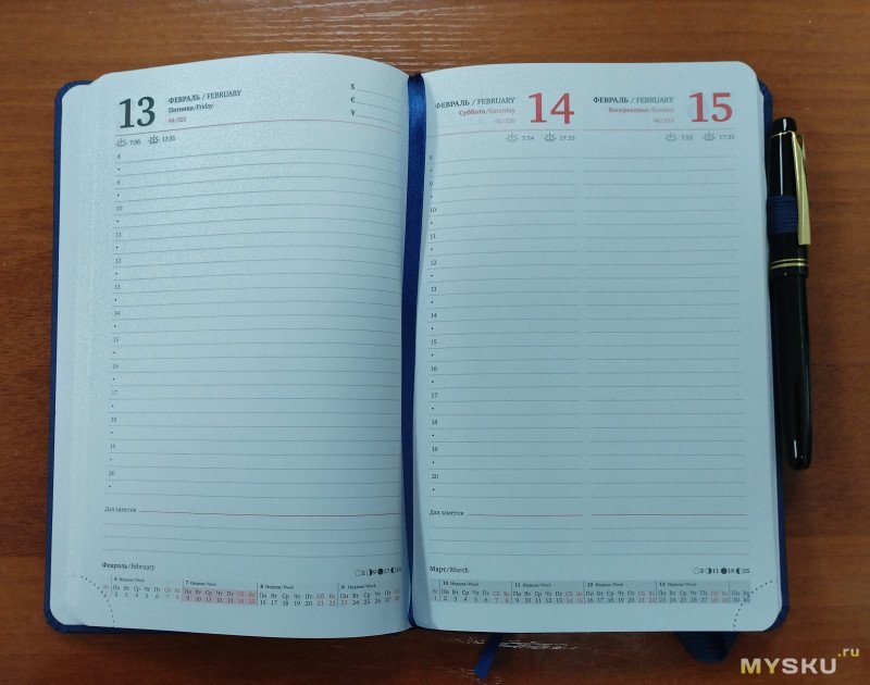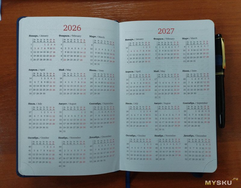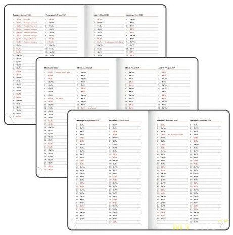 Информация удобно читаемая, крупная. Для работы это именно то что нужно. Календари в ежедневниках на 4, а то и больше лет очень мелким шрифтом мне не нравятся.