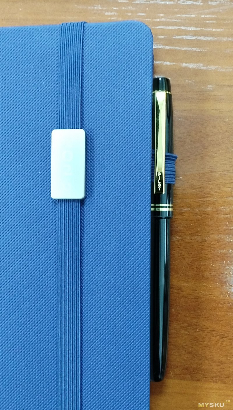 Есть держатель для ручки. Не менее удобный элемент в конструкции ежедневника. Пусть даже там будет не основная, а запасная ручка.