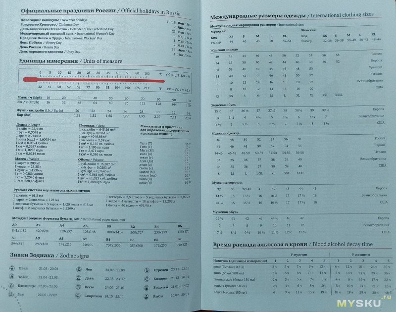 А вот единицы измерения, знаки зодиака, международные размеры одежды и конечно же время распада алкоголя в крови – мне честно говоря мало интересно