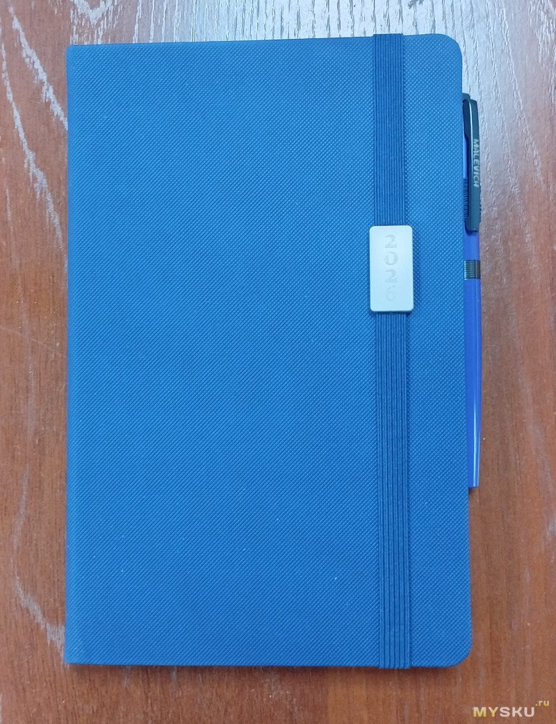 Обложка фиксируется резинкой, поэтому ежедневник не откроется в сумке или портфеле и страницы не помнутся. Очень удобный элемент ежедневника. Если его нет, я делаю сам из шляпной резинки под соответствующий цвет. Жесткая книжная обложка красивого синего цвета стилизована под искусственную кожу с мелким рисунком