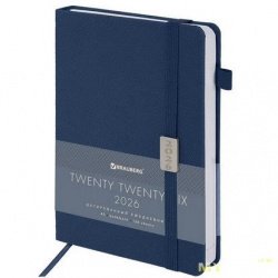 Ежедневник датированный 2026, А5 138x213 мм, обложка под кожу с резинкой-фиксатором и держателем для ручки, Brauberg