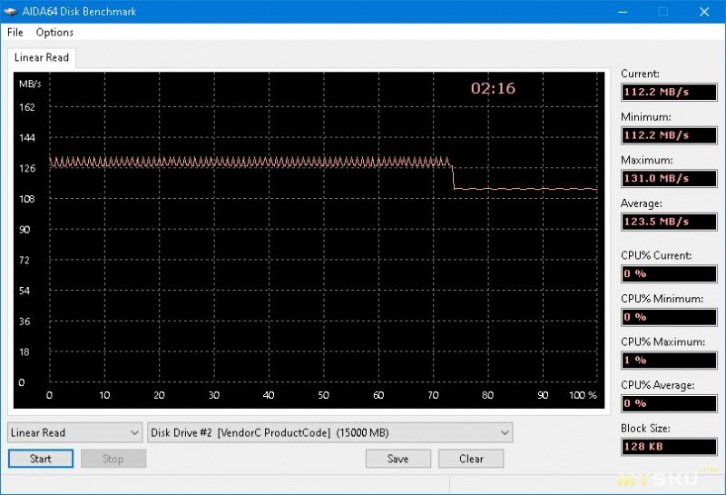 В процессе теста скорость записи не падала. Тест диска в AIDA64: