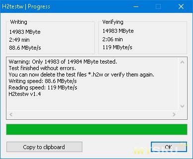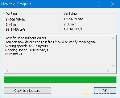 Всё ещё не веря своим глазам, я повторно запускаю H2testw:
