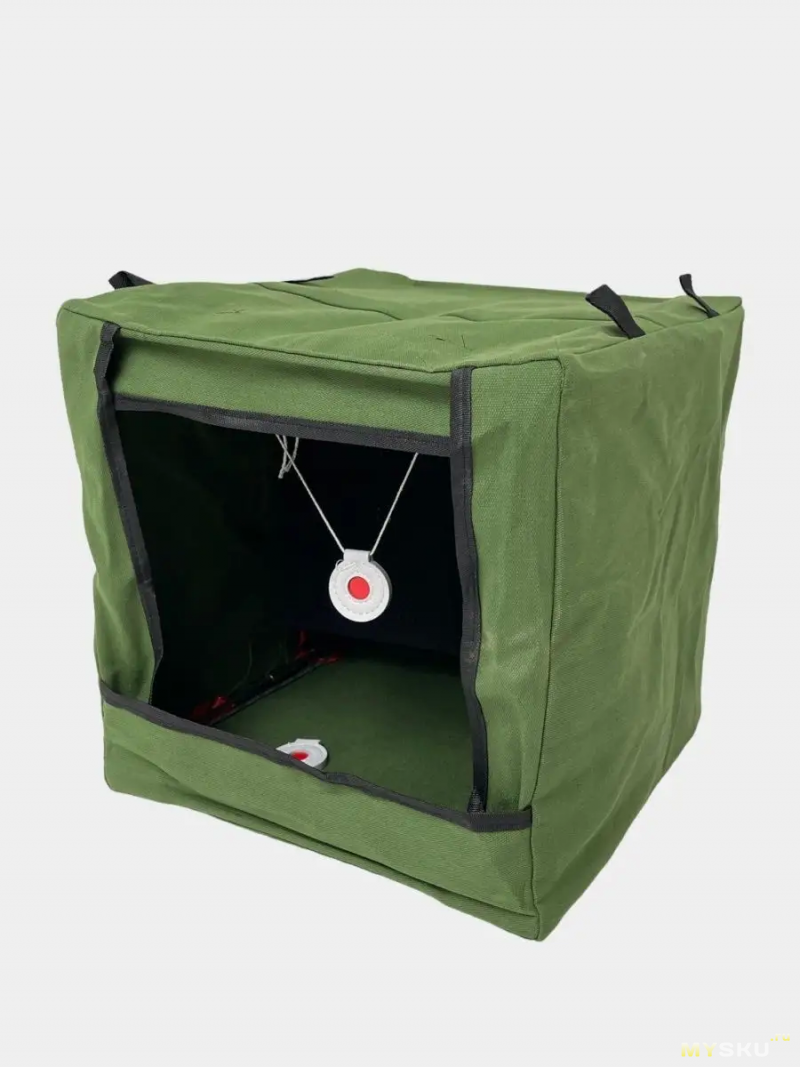 Стрелял я шарами массой 0,28 грамма с дистанции 6 метров по 30-миллиметровому гонгу, подвешенному внутри пулеуловителя. Предполагалось, что попадание от промаха будет несложно отличить на слух, однако оказалось, что звук попадания в гонг, во-первых, не особо громкий, а во-вторых мало отличается от звука при попадании в стенку пулеуловителя. Возможно, кто-то с более музыкальным слухом легко уловит различия в этих «дзынь», однако мне такое не под силу, ибо в ещё в глубоком детстве медведь сплясал джигу на моих ушах. Зато попадание легко заметить по амплитуде колебаний гонга: от попадания он начинает яростно раскачиваться и успокаивается только секунд через пятнадцать, а при промахе лишь слегка вздрагивает от удара шарика в стенку пулеуловителя.