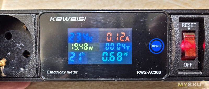 И еще одна приятная неожиданность – прожектор действительно потребляет заявленные 20 Вт! Сразу после включения потребление было даже на доли ватта больше, однако после прогрева прожектора снизилось до 19.5 Вт, которые и зафиксировались на фотографии. Вот чего-чего, а честного потребления от прожектора я и правда не ожидал – в наше время потребляемая мощность, это прямо первое, в чем обманывает производитель. Существует огромное количество светодиодных ламп условно промаркированных как 10 Вт, а в реальности потребляющих лишь 7 Вт, но, к счастью, у нас не тот случай. Правда вот с коэффициентом мощности производитель нас всё же обманул – при обещанных >0.9 реальный коэффициент мощности оказался всего 0.68, но давайте честно признаемся, что для большинства из нас это никакого практического значения не имеет.