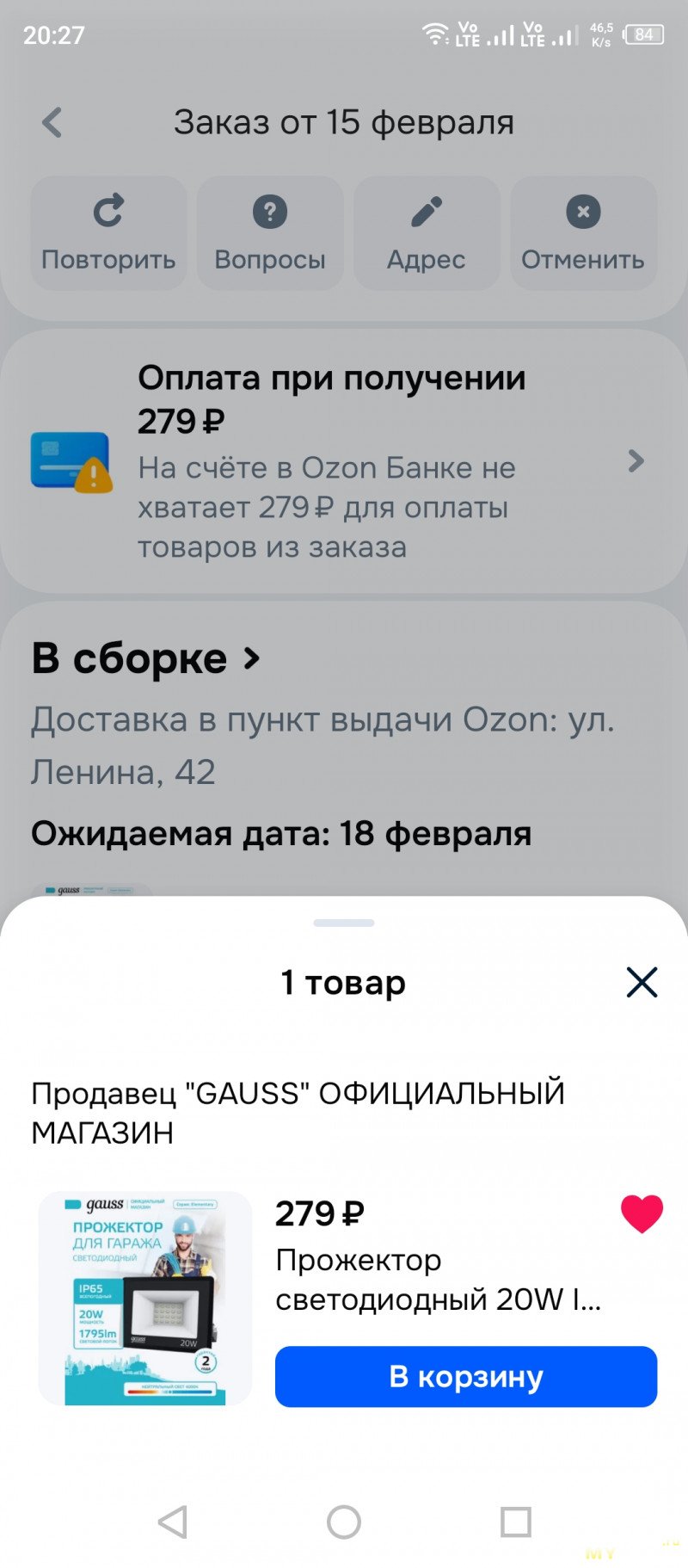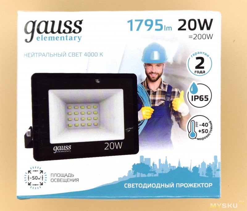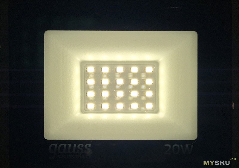 К счастью, прибегать к последнему варианту мне не пришлось, время, затраченное на поиск оказалось потраченным не зря, и я с первого раза попал в модель, которая мне действительно понравилась. Ей оказался прожектор Gauss Elementary с заявленной мощностью 20 Вт.
