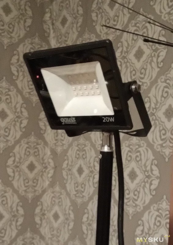 Прожектор меня очень порадовал. При своей достаточно низкой цене в 350 рублей на момент покупки, прожектор имеет большое количество плюсов:- Честная мощность 20 Вт