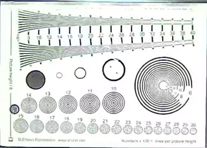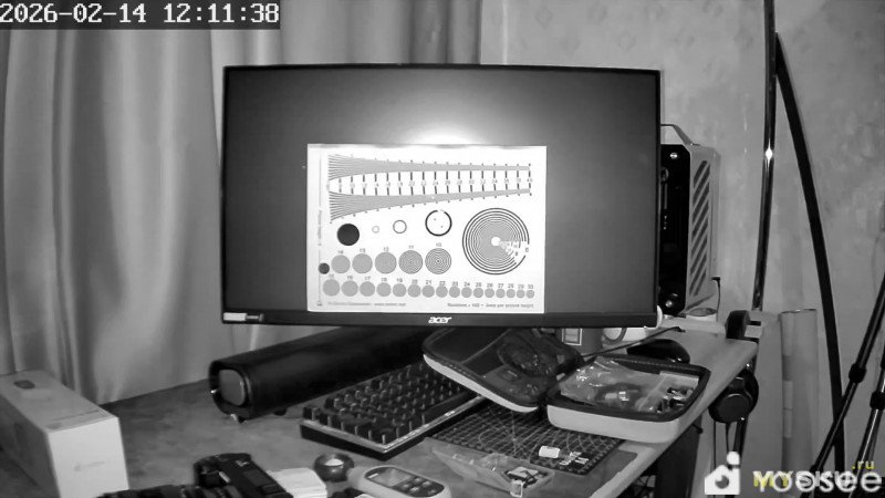 По центру тестовая таблица, размещённая на одной трети высоты кадра.Искусственное освещение. Накамерная подсветка выключена.